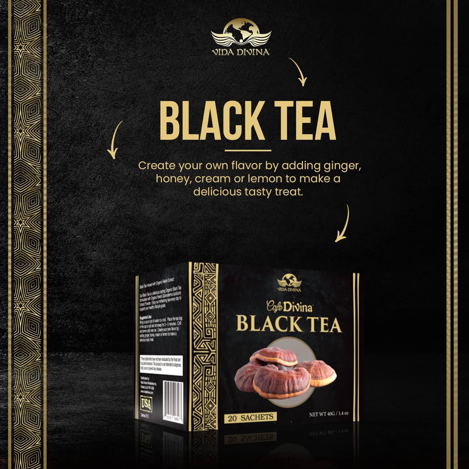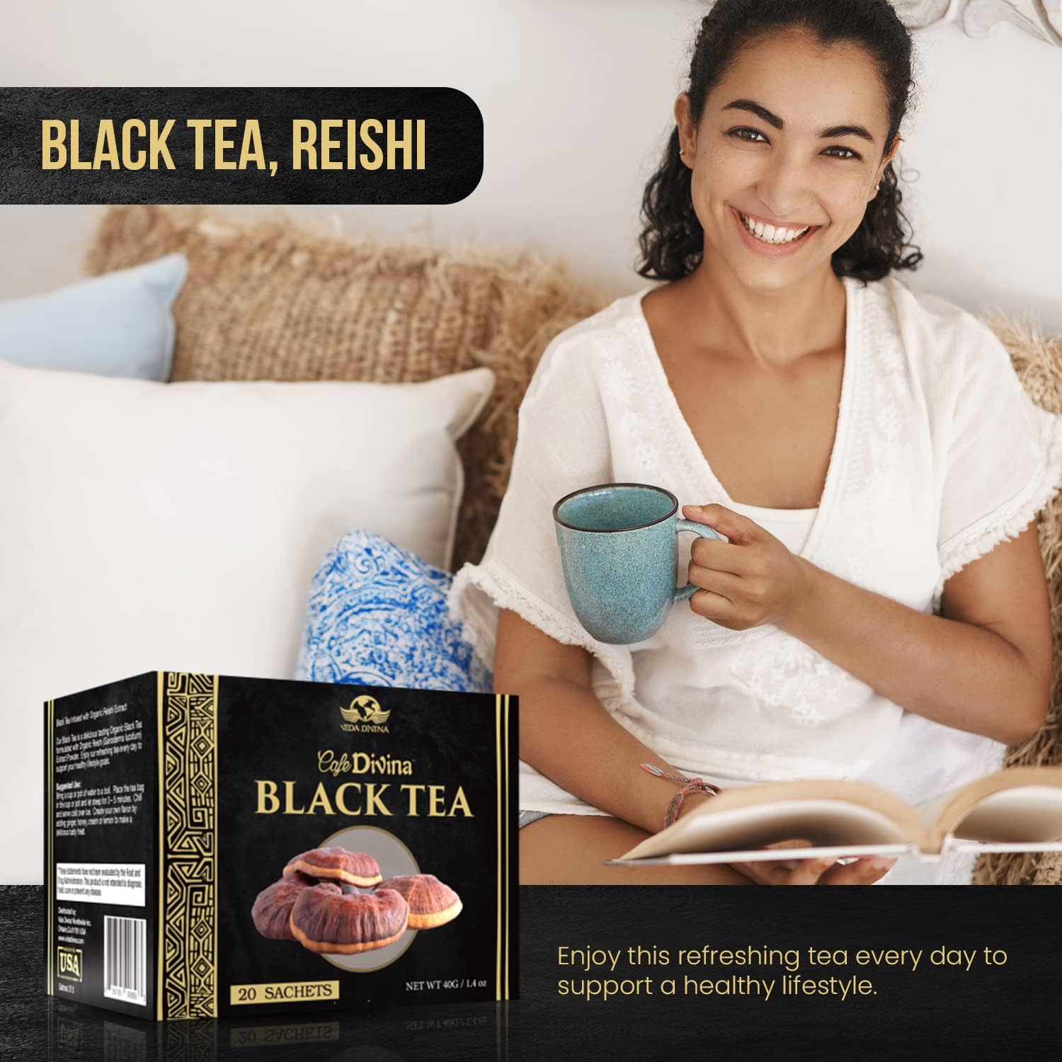 - EMPIEZA TU DÍA CON REISHI : Café Divina Black Tea que ayuda a mejorar el sistema inmunológico y la vitalidad.