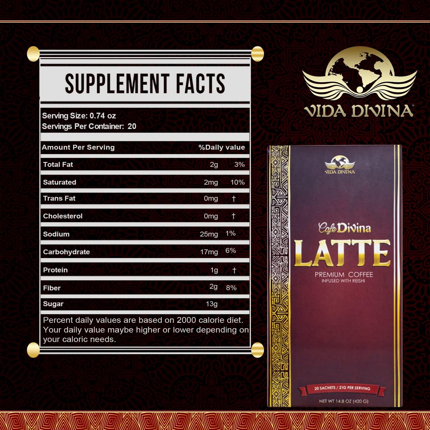 - We invite you to start your day with our creamy, delicious Latte premium coffee formulated with instant Arabica coffee beans and Reishi.
