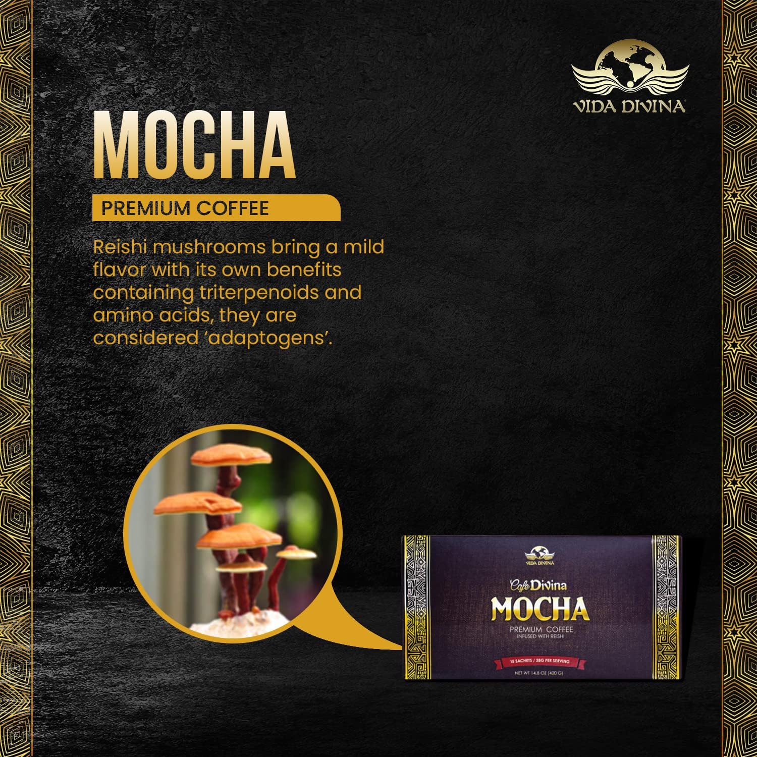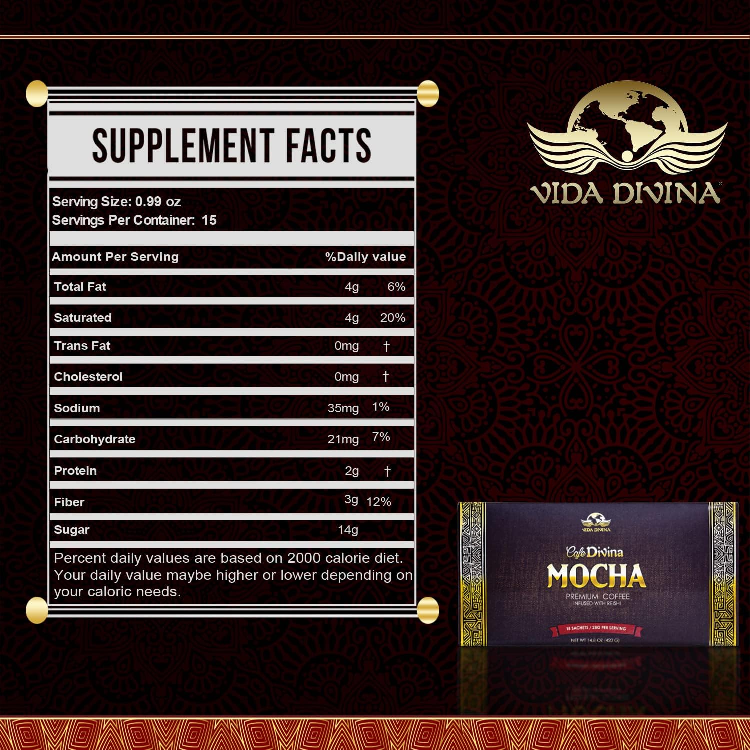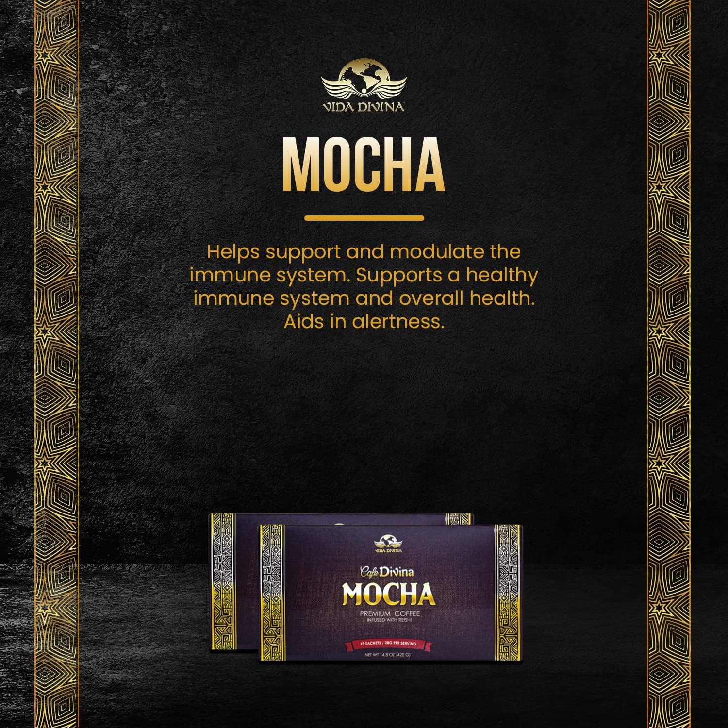 - Benefits: Vida Divina Mocha Premium Coffee Helps support and modulate the immune system’s overall health and helps in alertness. The perfect blend of chocolate and coffee to enjoy at any time of the day.